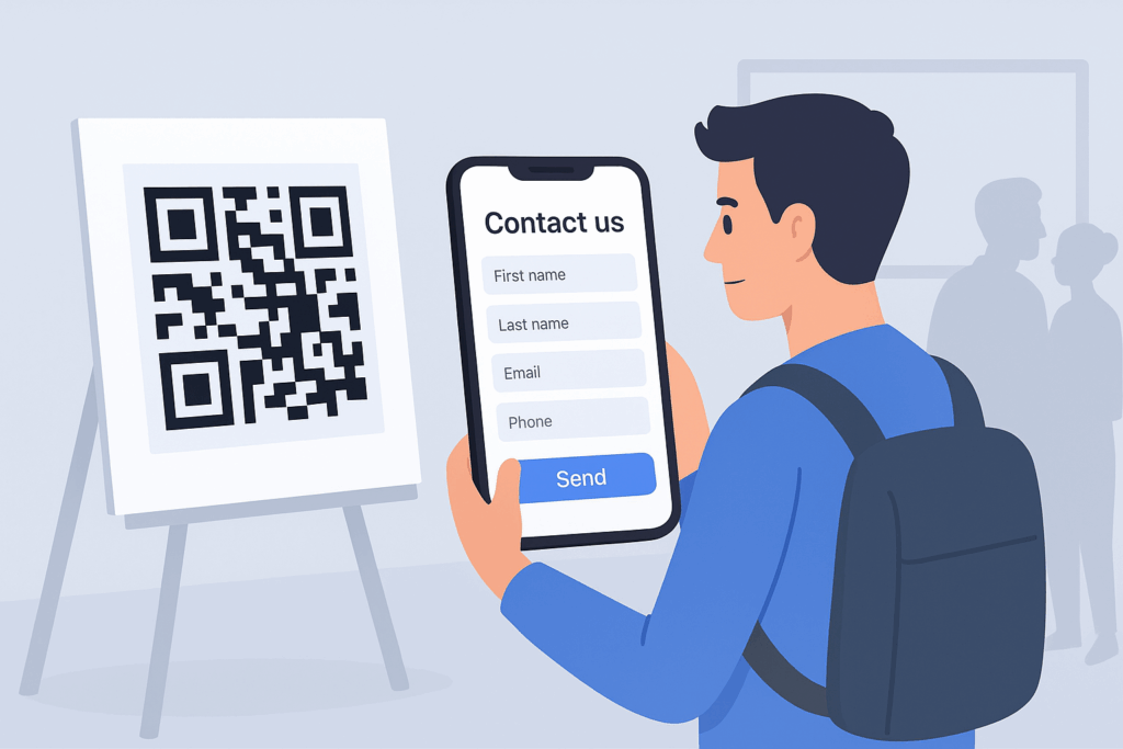 Imaginează-ți asta: ești ocupat prezentând produsul unui client, iar alți vizitatori vin la stand. În loc să pierzi oportunitatea, aceștia pot lăsa rapid datele lor printr-un formular accesat cu un simplu cod QR. Fără cărți de vizită, fără a scrie pe hârtie, doar rapid și intuitiv, direct de pe telefonul mobil.